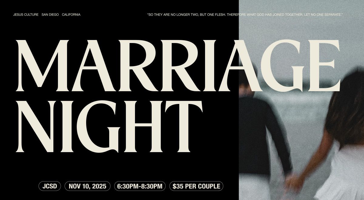 The JCSD Marriage Night will be a night of encouragement, connection and investment in your relationship for married couples. There will be dinner, individual and group connection, child care provided and more.