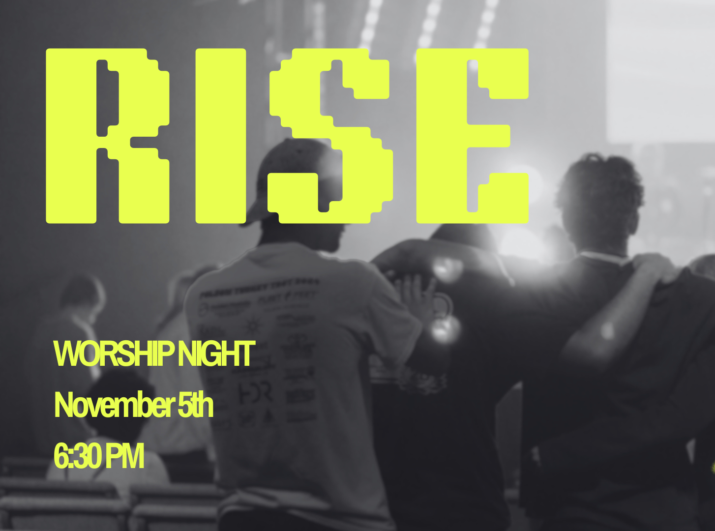 RISE YTH Worship Night happening on Wednesday November 5th at 6:30pm for our Highschool & Middleschool.
